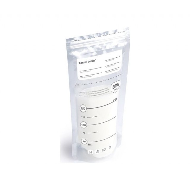 Canpol milk storage bags ensure safe and secure disposal of milk. The package contains 20 bags of 150 ml. The sturdy design of these bags allows them to stand on their own on a solid surface. They can be used in the fridge or freezer. BPA Free.