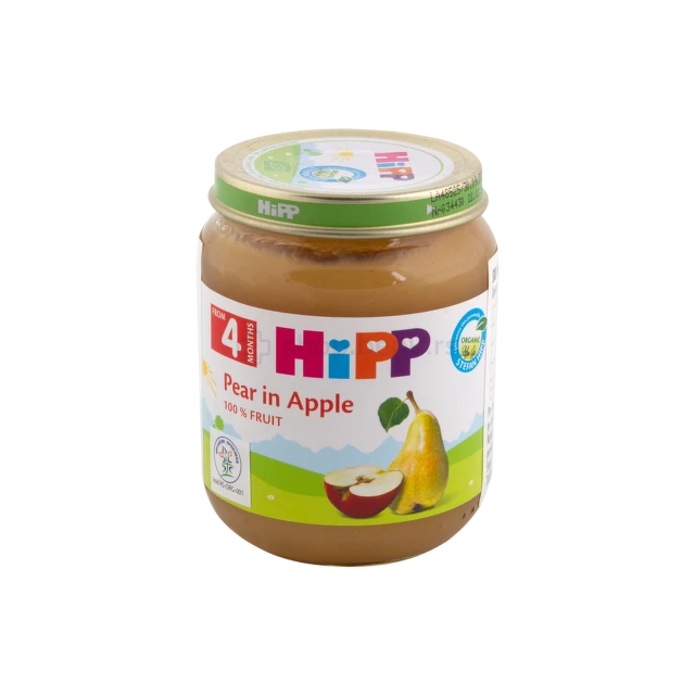 Hipp kaša jabuka i kruška predstavlja zdrav i ukusan dezert ili užinu namenjenu odojčadi uzrasta od 4. meseca. Sve Hipp voćne kaše bogate su vitaminom C koji doprinosi normalnoj funkciji imunog sistema. Proizvod ne sadrži arome, sredstva za zgušnjavanje, konzervanse, veštačke boje, mlečne proizvode i bez dodatka šećera i glutena je. Svi sastojci Hipp kašica su organski uzgajani bez upotrebe hemijskih pesticida, veštačkog đubriva ili insekticida.