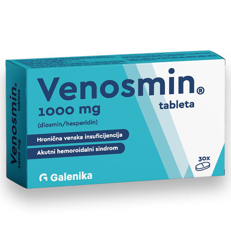 Venosmin® 1000 mg je lek namenjen terapiji poremećaja venske cirkulacije i ublažavanju simptoma hronične venske insuficijencije i hemoroidalnog sindroma kod odraslih.