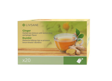 LIVSANE đumbir je mešavina biljnog čaja sa aromom limun-limete i đumbira prvog kvaliteta, koji sadrži 25% korena đumbira, 1% arome đumbira, 9% arome limun-limete i koru limuna. Čaj od đumbira je pogodan u smanjenju bolnih mensturalnih grčeva, a đumbir se često koristi i protiv mučnine. Jedno pakovanje sadrži 20 filter kesica.